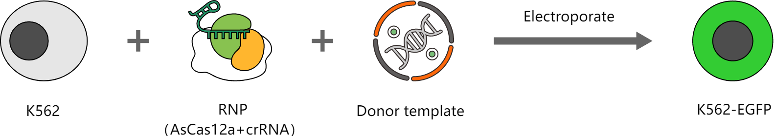球盟会生物基因应用电转染的方法将HES-KI系统递送至K562细胞中,实现EGFP在Safety Harbor位点插入并成功表达。